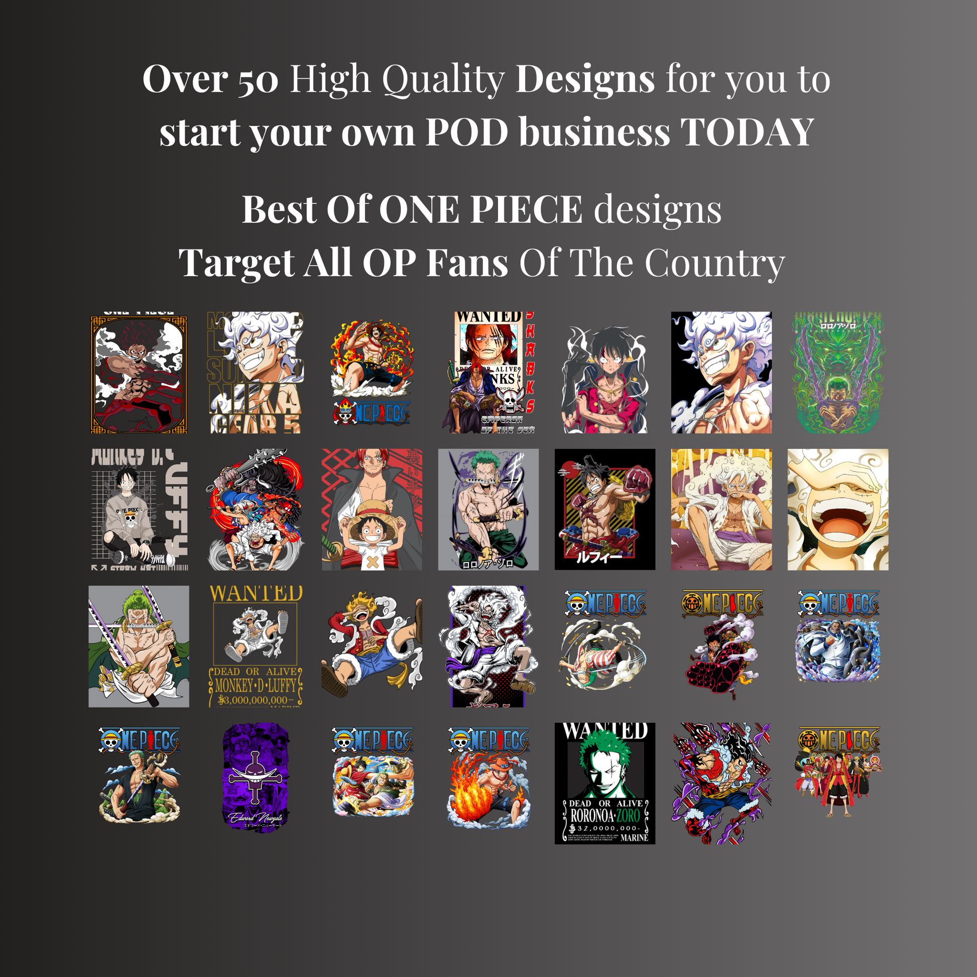 Make your print-on-demand store the ultimate destination for One Piece fans. Start selling these adventurous designs today and sail toward success! 🌊☠️✨