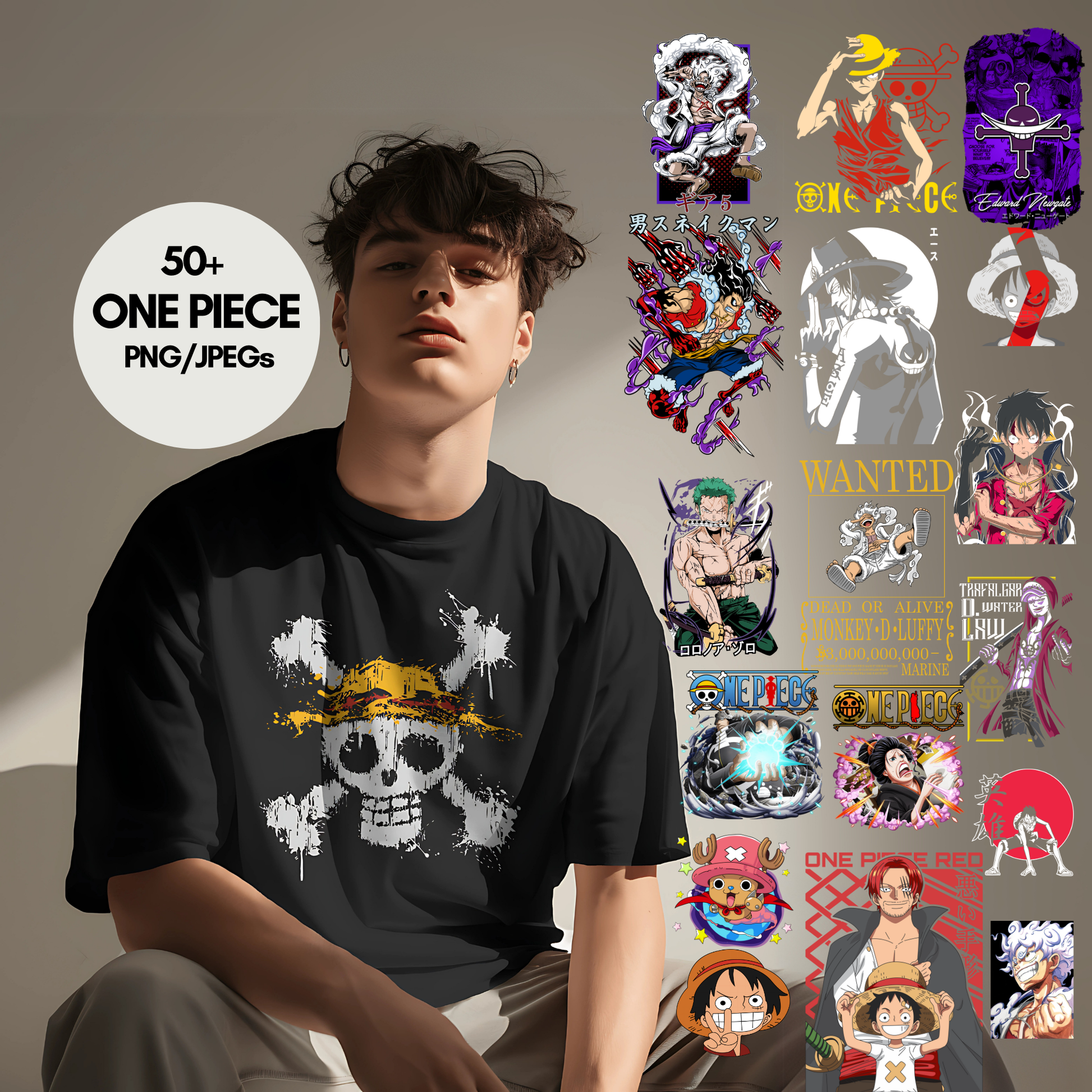 50+ premium designs in high-resolution PNG files inspired by One Piece, featuring: